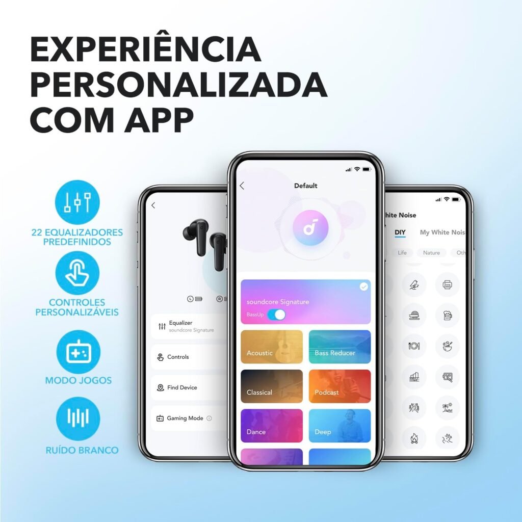 • Ajustes de equalização no app que melhoram o equilíbrio sonoro.
